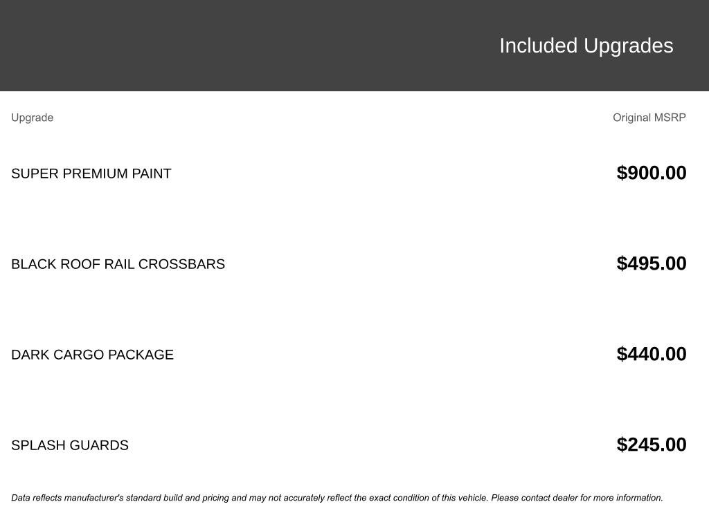 - Tires: P255/50R20 All-Season