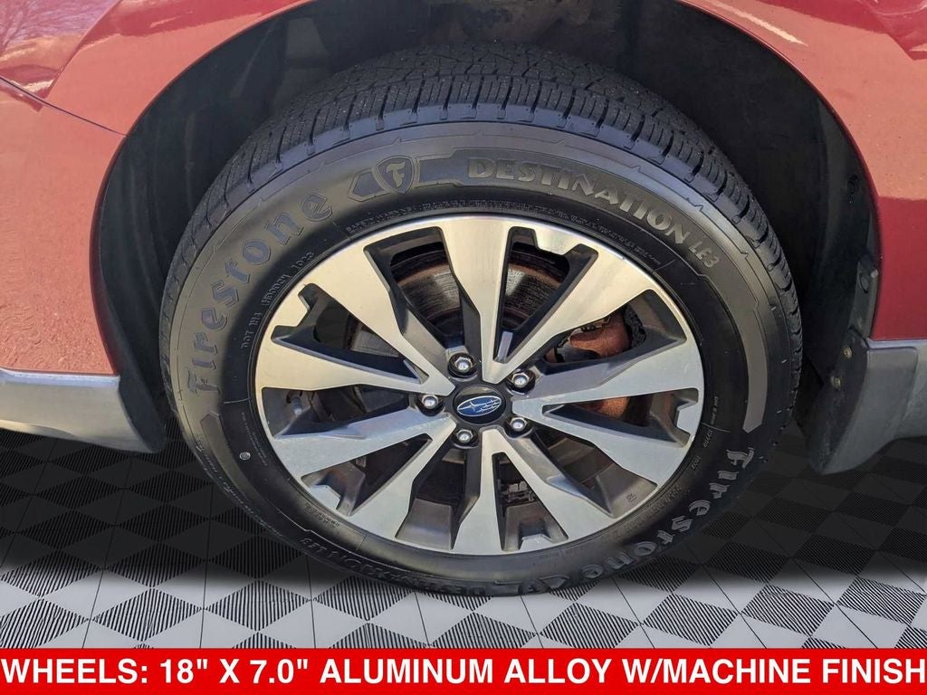 - Wheels: 18" x 7.0" Aluminum Alloy w/Machine Finish -inc: Black, black aluminum alloy center cap w/Subaru 6 star logo