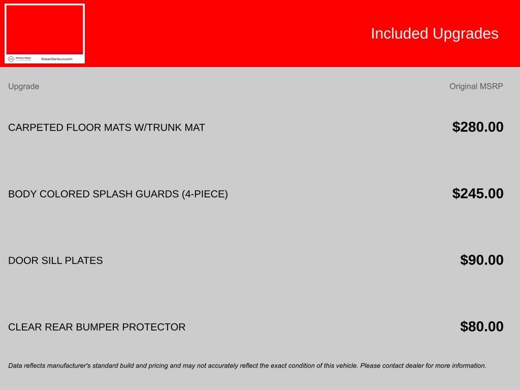 The all new Nissan INFINITI Of Danbury is proud to present you with another True Market Priced Pre-Owned Vehicle. Transparent Pricing Of $ 19290 !! This 2025 Nissan Sentra SV Nissan Certified is loaded with the following Factory Options: CVT with Xtronic and Charcoal Cloth Nissan Certified Certified, CVT with Xtronic, Charcoal Cloth, 16 Alloy Wheels, 4-Wheel Disc Brakes, 8 Speakers, ABS brakes, Air Conditioning, Alloy wheels, AM/FM radio: SiriusXM, Auto High-beam Headlights, Blind Spot Warning, Body Colored Splash Guards (4-Piece), Brake assist, Bumpers: body-color, Carpeted Floor Mats with Trunk Mat, Clear Rear Bumper Protector, Delay-off headlights, Door Sill Plates, Driver door bin, Driver vanity mirror, Dual front impact airbags, Dual front side impact airbags, Electronic Stability Control, Four wheel independent suspension, Front anti-roll bar, Front Bucket Seats, Front Center Armrest, Front reading lights, Fully automatic headlights, Illuminated entry, Knee airbag, Low tire pressure warning, NissanConnect featuring Apple CarPlay and Android Auto, Occupant sensing airbag, Outside temperature display, Overhead airbag, Overhead console, Panic alarm, Passenger door bin, Passenger vanity mirror, Power door mirrors, Power steering, Power windows, Radio data system, Radio: AM/FM with RDS/MP3/Aux-in, Rear anti-roll bar, Rear Parking Sensors, Rear side impact airbag, Rear window defroster, Remote keyless entry, Security system, Speed control, Speed-sensing steering, Split folding rear seat, Steering wheel mounted audio controls, Tachometer, Telescoping steering wheel, Tilt steering wheel, Traction control, Trip computer, Upgraded Cloth Seat Trim, and Variably intermittent wipers!!